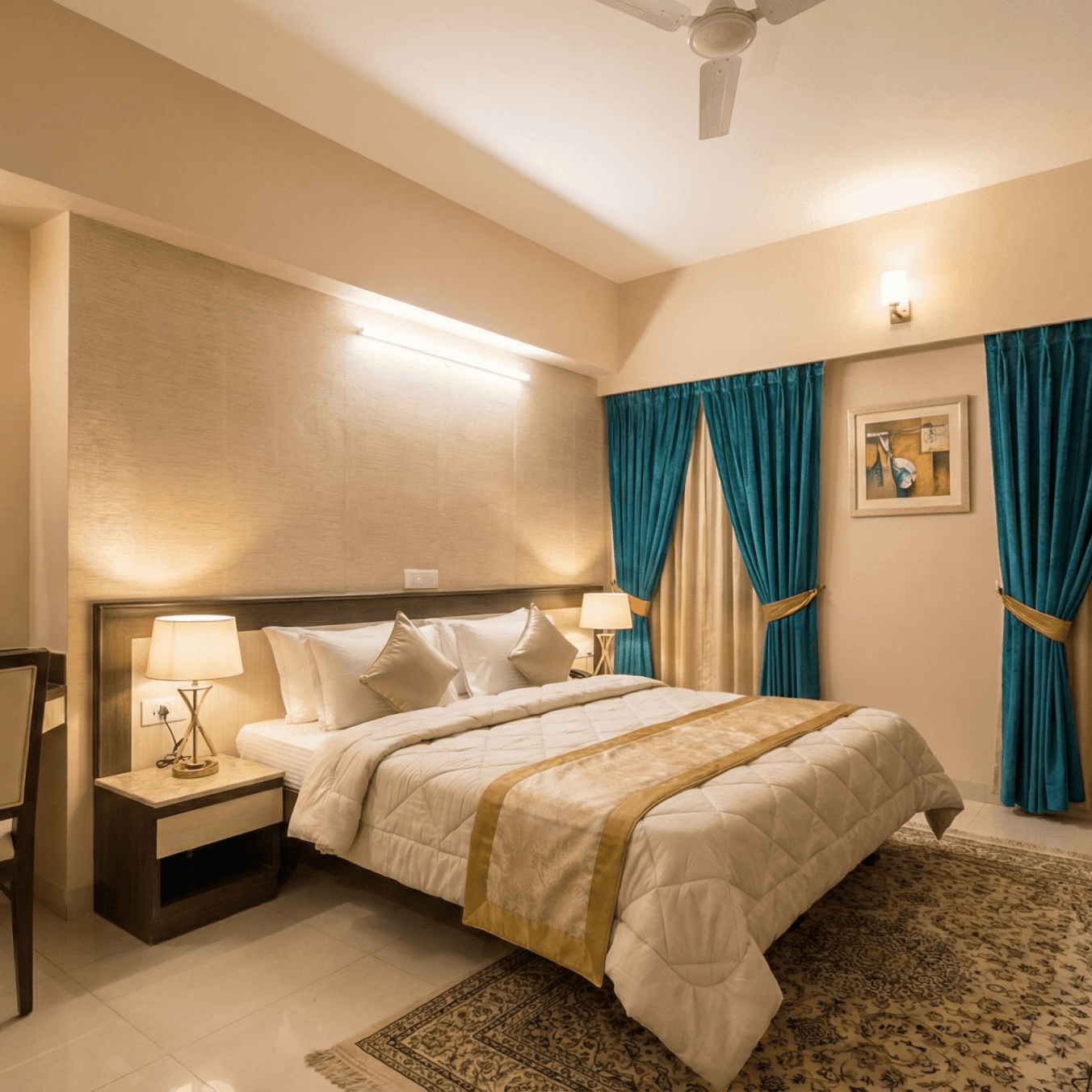 A budget hotel designed with G+5 configuration, 35 rooms, lifts, and basement parking, delivered through structured planning, development oversight, and full fit-out execution, enabling a ready-to-operate handover without defects.